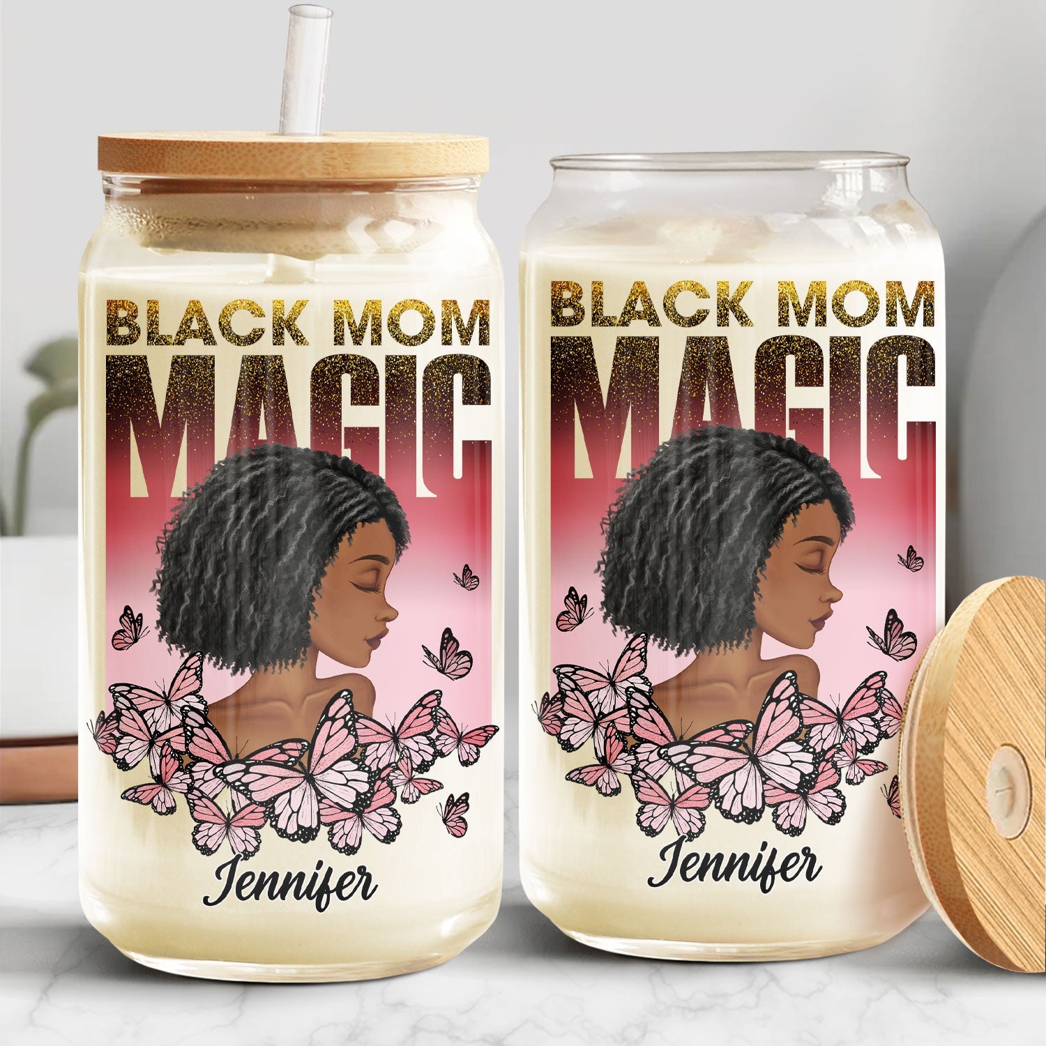 Black Mom Magic - Gift For Mother - Personalized Clear Glass Can
