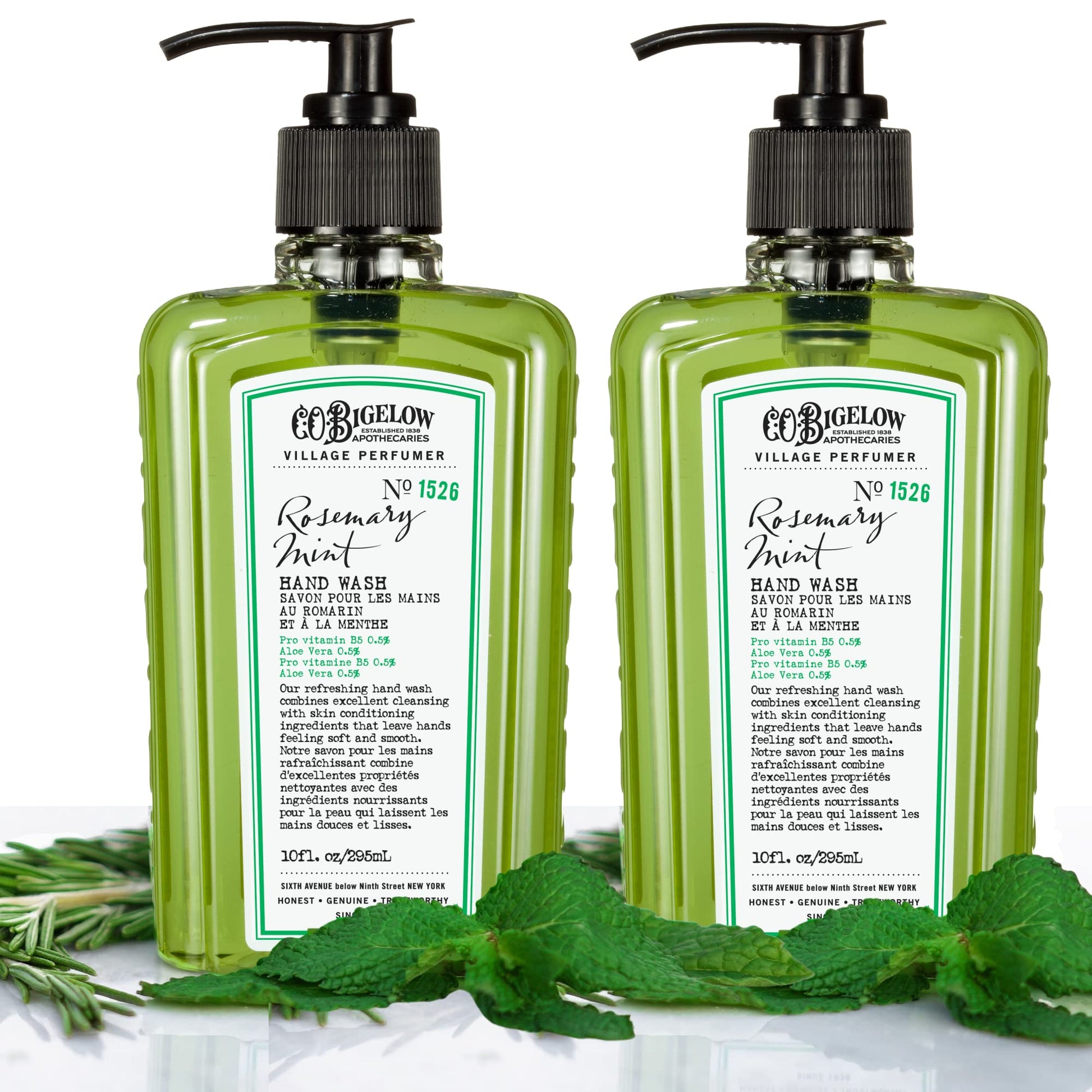 C.O. Bigelow Hand Wash, Rosemary Mint Soap, No. 1526 - Village Perfumer Moisturizing Hand Wash for Bathroom & Kitchen with Aloe Vera, 10 fl oz, Pack of 2