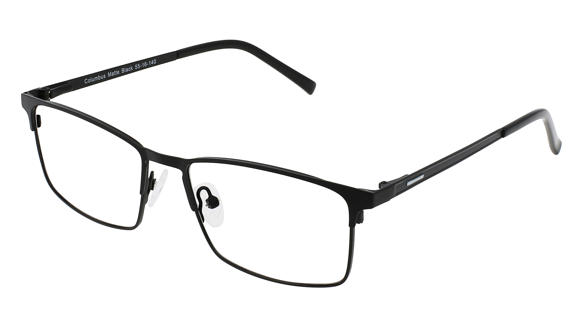 - Columbus is a structured rectangular frame with a high-tech feel. This frame features a matte black browline and adjustable nose pads.