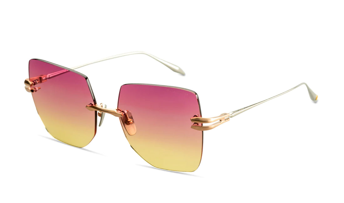 EMBRA takes the concept of wearable art to new heights with DITA’s first women’s rimless frame in 20 years. The sculpted titanium lens-setting and custom titanium chamfered hinge block elegantly mirrors the construction of precious jewelry pieces emphasizing EMBRA’s impact of intricate beauty. Experimental new gradient shades of Peachy Sunset and Dark Turquoise captivate and inspire a playful attitude with an unexpected punch of vibrancy challenging the qualifications of societal normalities birthing a brilliantly sculpted frame.