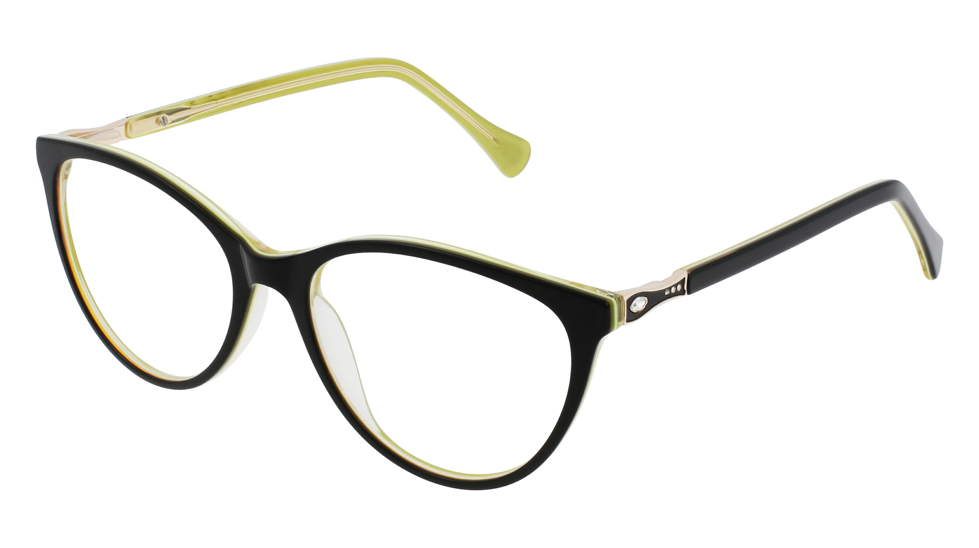 - Lauralee is a flirty, feminine frame in a contrasting crystal yellow and black colorway. The cat-eye shape and subtle rhinestone detailing at the temples make this a fun, unique frame that's still perfect for daily wear.?