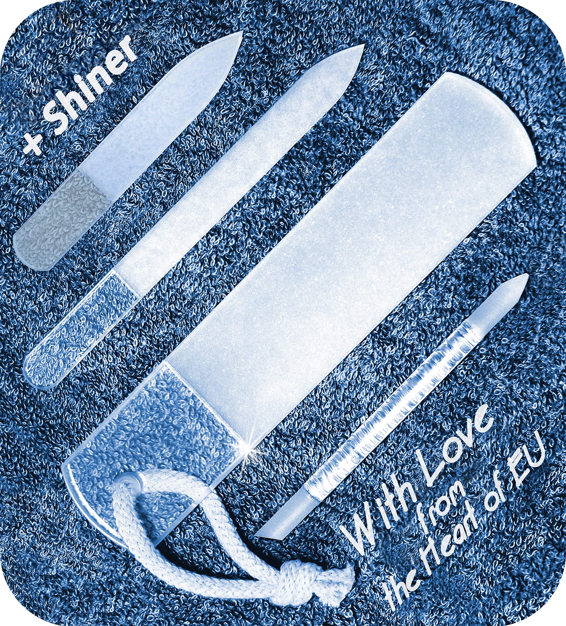 - PREMIUM QUALITY – Bohemian crystal glass nail files kit is double sided and made of premium quality Czech crystal glass. The grit board is permanently chemically etched (acid engraving) on both sides of the glass, so it will not degrade over time and will a lifetime.