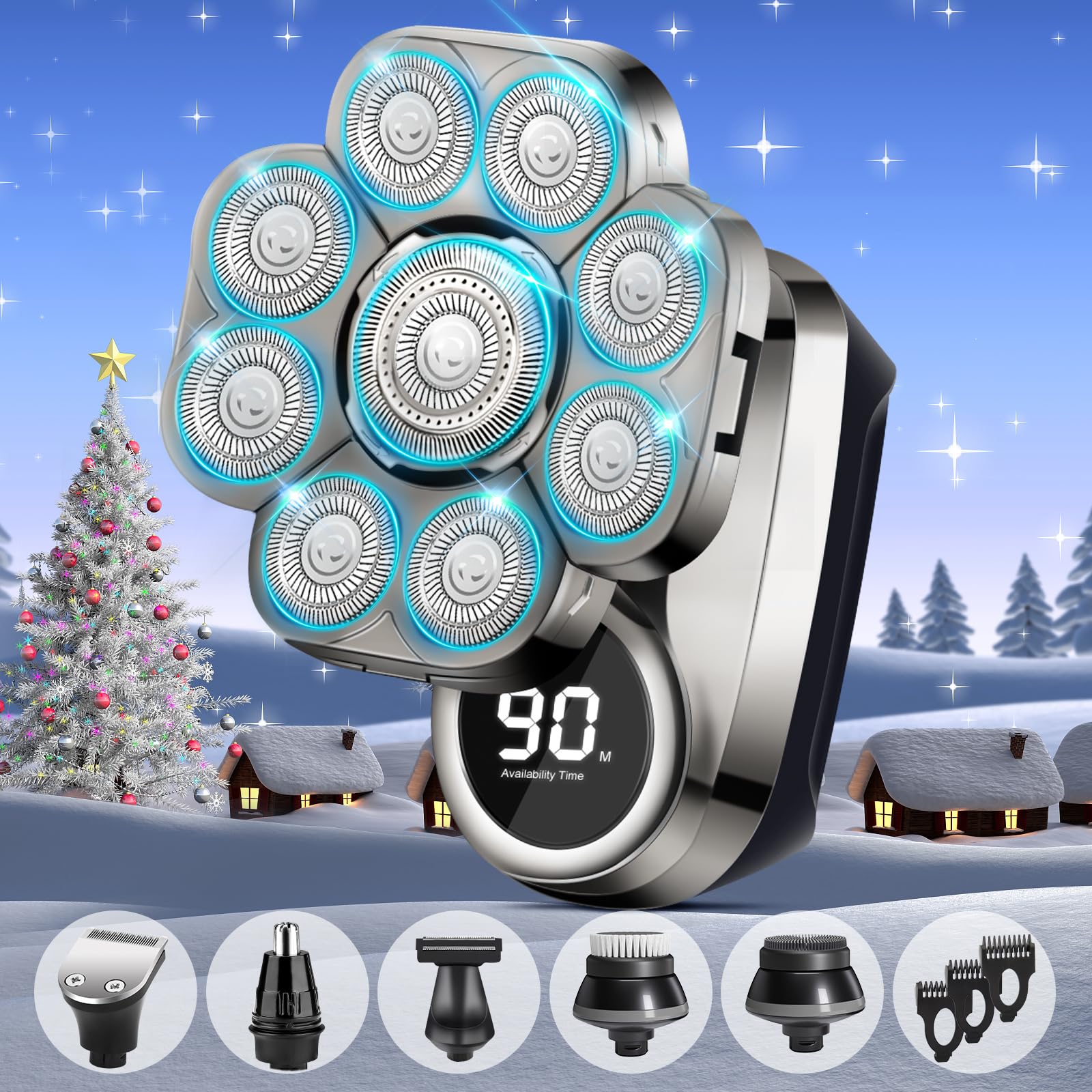 Head Shavers for Bald Men, 6 in 1 9D Floating Electric Shavers for Men Bald Head, IP67 Waterproof Electric Razor for Men Wet and Dry Shaving with Grooming Kit, Rotary Shaver for Men with LED Display