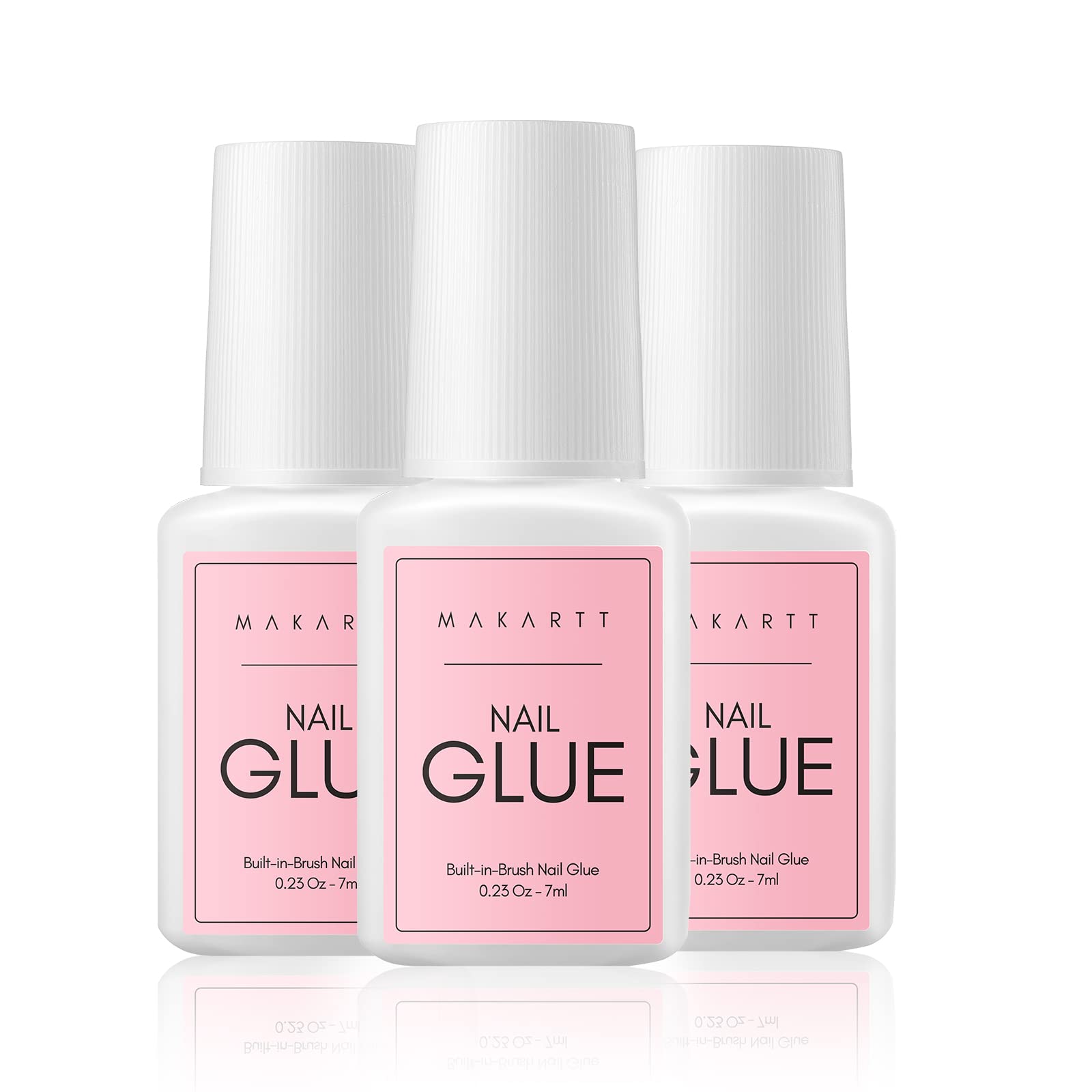 Makartt Super Strong Nail Glue for Acrylic Nails 7ML 3 Pcs Brush on Nail Glue for Nail Tips Press On Nails Ultra Quick,Long Lasting,Easy to Use False Nail Glue for Glue on Nails Fake Nails DIY Nails