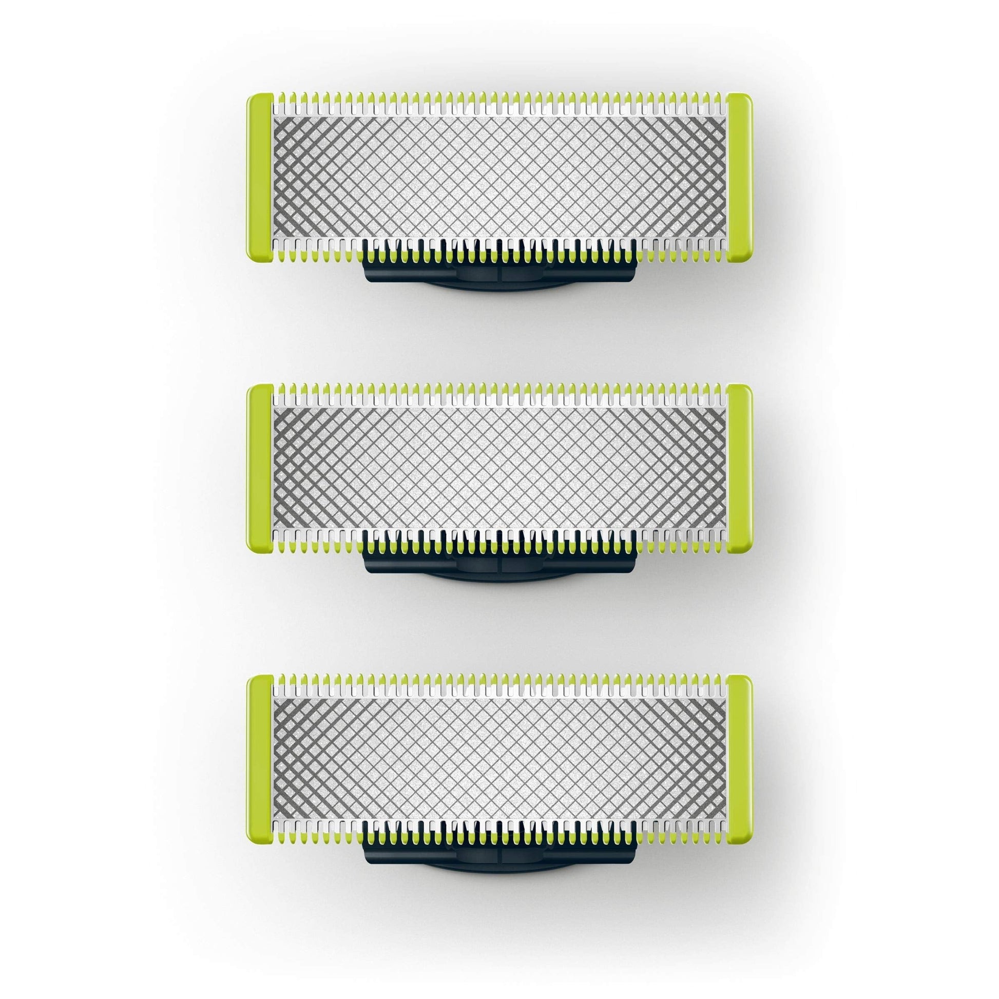 Details: Philips OneBlade replacement blades are compatible with all Philips OneBlade and Philips OneBlade Pro models. The cutting blades on the OneBlade shaving head move at 200 revolutions per second. This allows you to shave everything from stubble to a long beard in one stroke.Replacement blades per package: 3 Fits product type: OneBlade (QP25xx), OneBlad (QP26xx), OneBlade Pro (QP65xx), OneBlade Pro (QP66xx)
